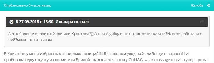 Косметолог пишет, что предпочитает работать с косметикой Холи Ленд.