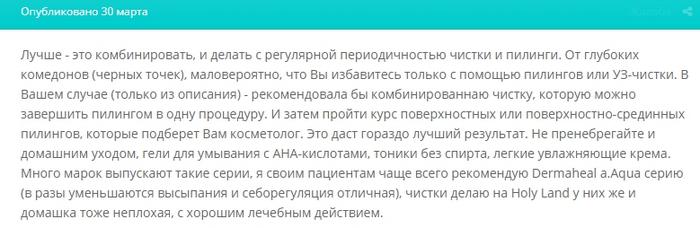 Косметолог советует процедуры для ухода за проблемной комбинированной дермой. Пишет о хорошем лечебном эффекте чистки Холи Ленд и домашнем уходе этого бренда.