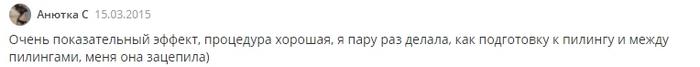 Пользователь пишет о хорошем результате процедуры, применении на этапе подготовки к пилингу.