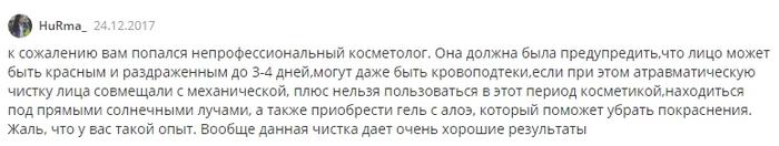 Участник пишет о непрофессиональном проведении процедуры. При выполнении протокола чистка дает хорошие результаты.