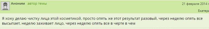 В отзыве описывается негативный опыт проведения чистки, результат сохраняется всего неделю, после вновь наблюдаются высыпания.