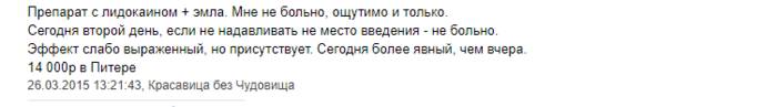 Участник пишет о применении анестезирующей мази для комфортного проведения, слабовыраженном эффекте.