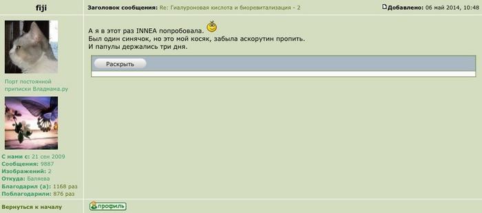 Пробовать препарат решаются не многие пациенты. Настораживает слабая известность средства. При знакомстве с веществом негативные впечатления не формируются. Пациенты отзываются о результате положительно, часто приравнивают достижения к тем, которые получают от более известных препаратов. Минимальное количество побочных эффектов — еще 1 плюс биоревитализации с INNEA.