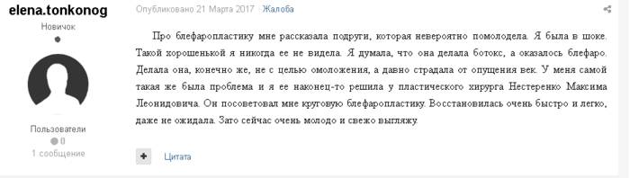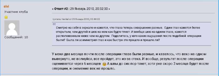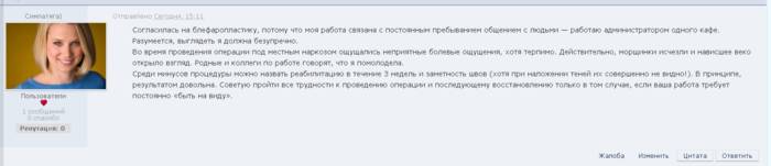 Другая участница форума сделала блефаропластику, поскольку того требует профессия. Женщина убеждена, что на кардинальные меры нужно идти только в том случае, если ваша работа связана с постоянным общением с людьми вживую.