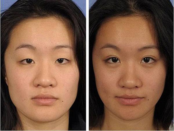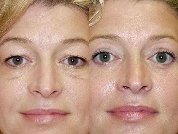 Следующее фото до и после демонстрирует эффективность операции по коррекции верхнего века.