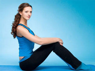 - Ноги слегка сгибают в коленях. Немного выше коленных суставов размешают руки (нижняя часть бедра).