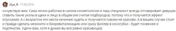 В отзыве участник пишет о большем эффекте постановки мезонитей и биоревитализации, чтобы исправить результаты неудачной мезотерапии.