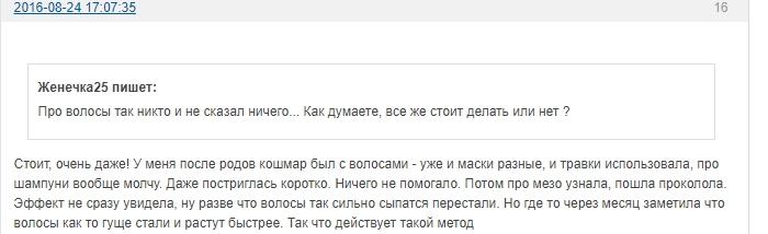 Участник описывает положительный опыт применения мезотерапии для волос, удалось справиться с проблемой выпадения, улучшить качество, густоту.