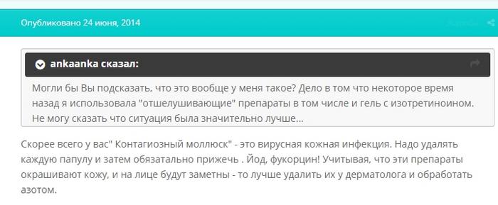 Косметолог пишет о способах лечения вирусной кожной инфекции. После удаления контагиозного моллюска кожа обрабатывается азотом.