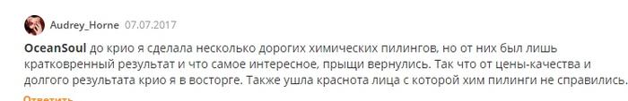 Участник пишет о лучшем эффекте крио терапии в сравнении с дорогими химическими пилингами.