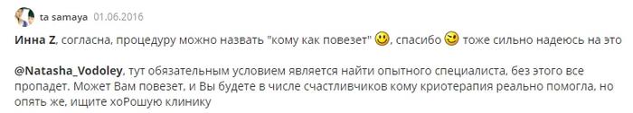В интернете встречается преимущественно положительные отзывы пациентов, испытавших действие крио чистки.