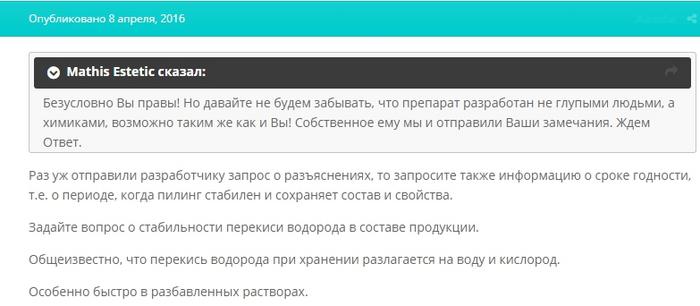 Но встречается и отрицательный опыт применения. Пользователь пишет, что при частом использовании перекись провоцирует купероз.