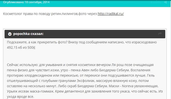Пользователь описывает уход за проблемной кожей, локальные воспаления нейтрализует перекисью. Специалист советует дополнительно пройти курс ретиноевых пилингов.