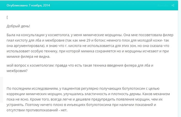 Косметолог пишет об особенностях ботокса и биоревитализации, молодая, здоровая кожа является результатом системного ухода.