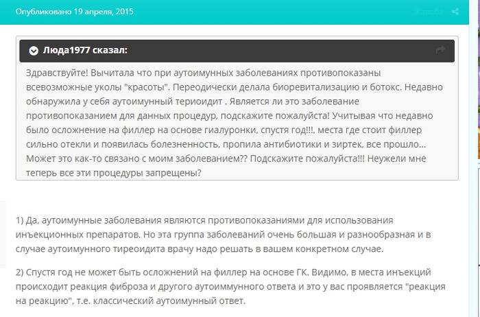 Специалист отвечает на вопрос пользователя, являются ли аутоиммунные заболевания противопоказанием к инъекциям ботокса и биоревитализации. Группа нарушений обширная, поэтому необходима консультация врача.