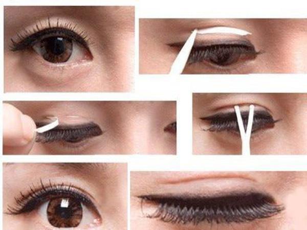 Большинство женщин, использовавших средства для поднятия верхнего века, отдают предпочтение клею или двусторонним полоскам под нанесение макияжа. Производители наклеек советуют использовать тени кремовой структуры. Однако односторонние наклейки зачастую проглядываются даже через них.
