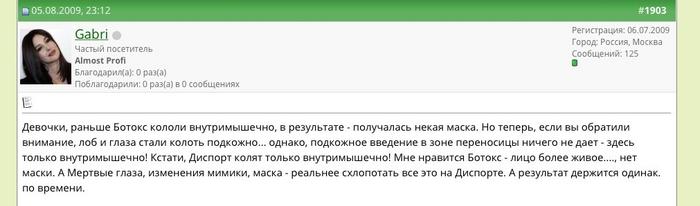Врачи ценят методику за отсутствие большинства побочных эффектов (асимметрия, птоз), возможность применения способа на опасных для стандартного ботокса участков.