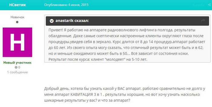 Следующий косметолог также не отрицает эффективность радиочастотного омоложения кожи. Единственно, на чем стоит акцентировать внимание, что оценивать пользу процедуры нужно через 1–2 месяца, а не в первые дни. Это главная ошибка неодобрительных отзывов пациентов. Плюс, автор комментария делится собственными наблюдениями и советами по безопасному проведению процедуры омоложения.