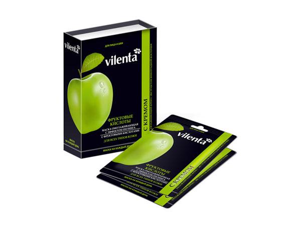 - Vilenta. Отшелушивающая маска на фруктовых кислотах. Производитель также предлагает варианты на угле, соках фруктов. Одноразовые пакеты продают за 80 руб.