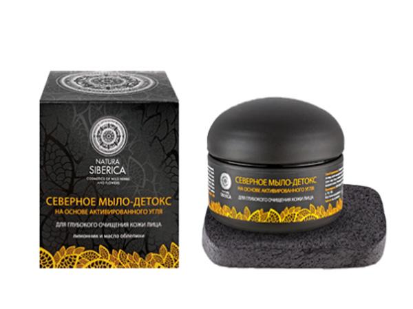 - Натура Сиберика. Мыло «Северное» на основе угля. Средство гелеобразной текстуры подходит для глубокого очищения кожи любого типа. Банки 120 мл продают по цене от 450 руб.