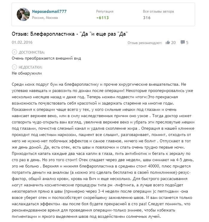 Обратите внимание! По отзывам прооперированных пациентов, блефаропластика — не летняя процедура, для ее выполнения выбирайте зиму, позднюю осень.