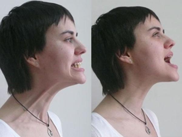 - Голову запрокинуть вверх, мысленно произнося звук «У». Задержаться на несколько секунд, почувствовав напряжение мышц подбородка.