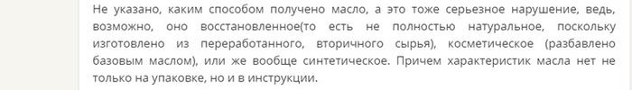 Девушка по имени Снежана не рискнула использовать эфирное масло лимона на коже, поскольку поняла, что купила некачественный продукт. На это указало сразу несколько факторов: низкая цена (меньше 100 рублей за 10 мл), резкий и неприятный запах, отсутствие необходимой информации на упаковке.