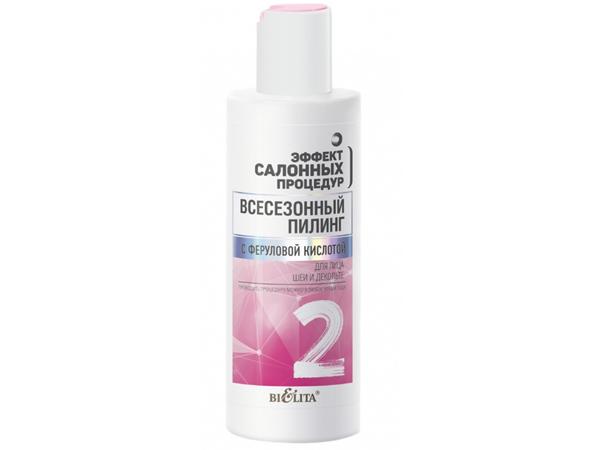 Всесезонный феруловый пилинг Bielita рекомендуется применять для глубокого очищения, выведения токсинов, регуляции синтеза сальных желез. Корректирует признаки фото и хроностарения, ускоряет обновление, защищает кожу от ультрафиолета и действия свободных радикалов. Обладает противовоспалительными свойствами, предупреждает возникновение акне и комедонов. Нормализует гидробаланс, эффективен при гиперпигментации, веснушках. Состав включает феруловую, молочную, лимонную кислоту. Цена нанопилинг Белита — 105 мл 177 руб.