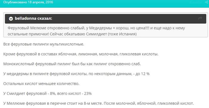 Косметолог сравнивает различные марки феруловых пилингов, пишет о многокомпонентных составах.
