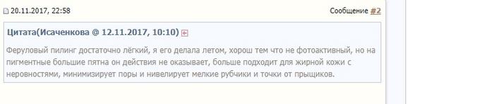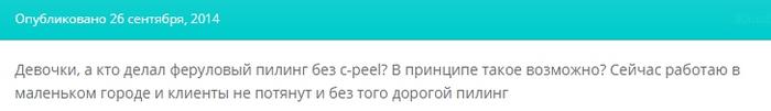 Пользователь пишет о рисках использования ферулового пилинга в домашних условиях.