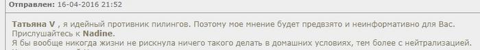 Но встречаются и разочарованные действием пилинга пользователи. Участник пишет, что эффект не соответствует заявленному косметологом, пишет о коммерческом интересе специалиста.