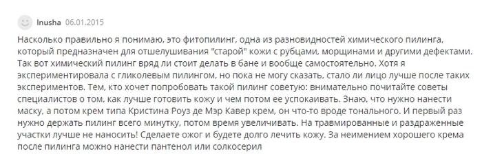 Косметолог описывает опыт применения фитопилинга Каэтана, разочаровал странный запах, вызвал сложности процесс смывания.