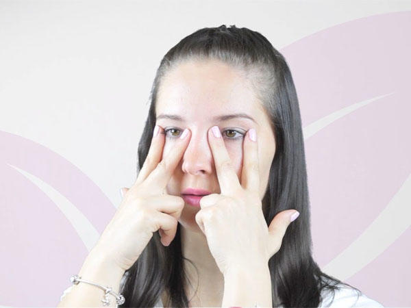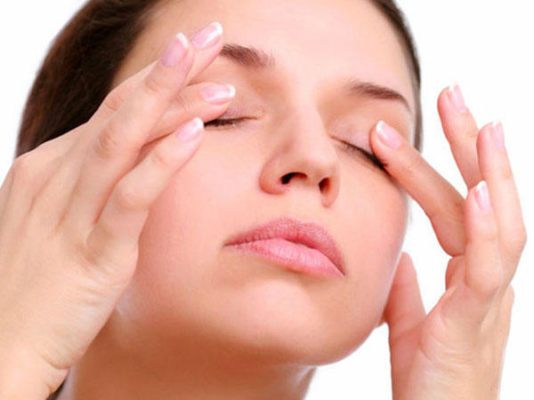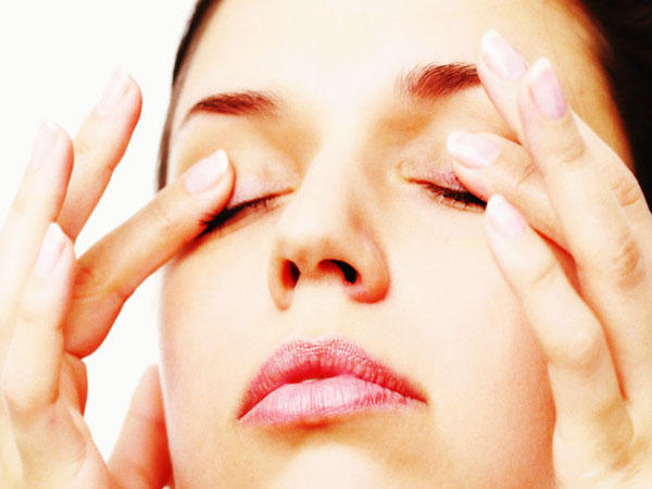 - Поставьте средний или безымянный палец поблизости переносицы на верхнее веко. Подушечками пальцев осуществляйте легкие постукивания, продвигаясь к внешнему кончику глаза. Опуститесь на нижнее веко и двигайтесь в обратном направлении. Пройдитесь так 20 раз.