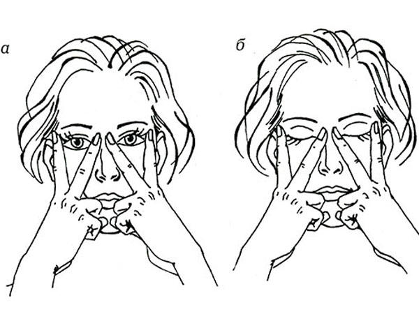 - Перемещайте их вдоль носослезной бороздки 5–7 раз, возвращаясь в исходное положение.