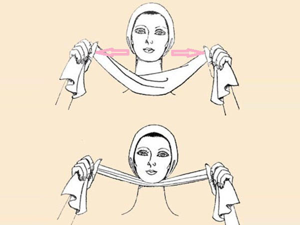 Сложить полотенце до получения ленты шириной около 10 см. Взять за края и растирать нужную зону движениями из стороны в сторону, как бы пытаясь распилить. Процедуру продолжать до легкого покраснения.