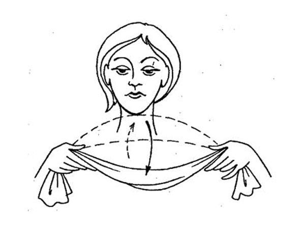 - Заканчивается процедура разглаживающими движениями от середины подбородка к мочкам ушей.
