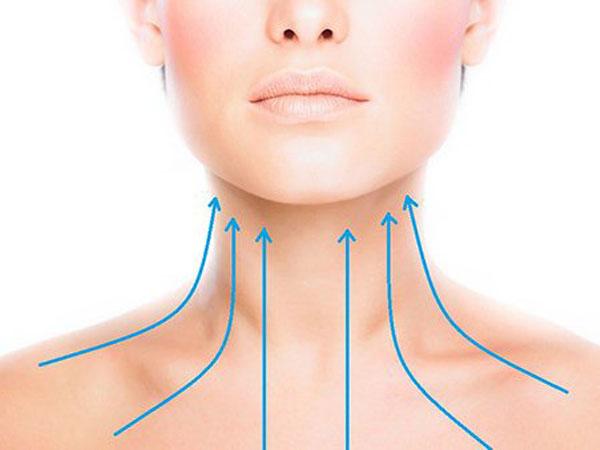 - Массажные линии проходят от центра подбородка к мочкам ушей.