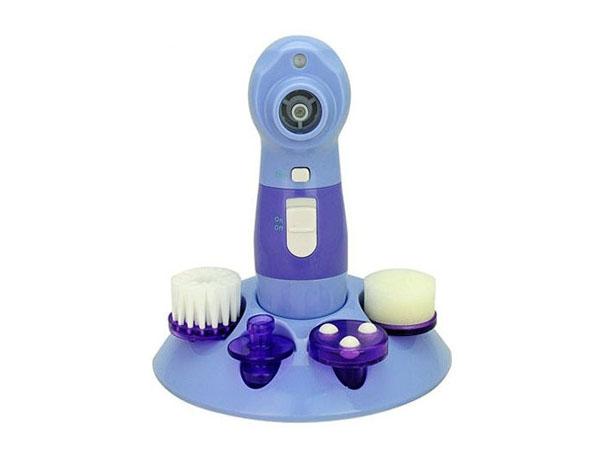 К устройству производитель прилагает 4 насадки (массажер с роликами, насадка-присоска, поролоновая губка и щеточка для глубокого пилинга), инструкцию для пользователя и удобную подставку для прибора.