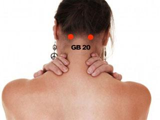 - Фэн-чи (gb 20) — располагается на затылке, у основания черепа. Способствуют снижению болезненных ощущений, вызванных простудой, мигренью, нервным перенапряжением, стрессом.