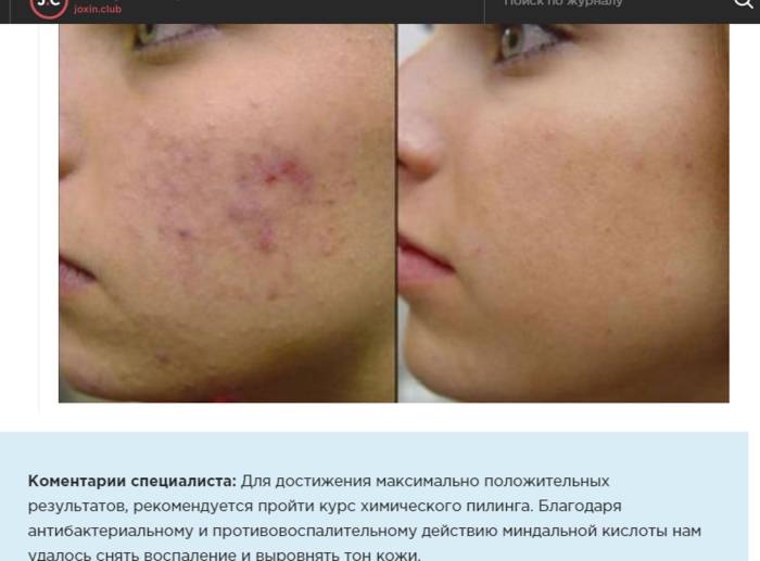 - Нанесение слабого 5% раствора миндальной кислоты на лицо. Это поможет посмотреть, нормально ли эпидермис реагирует на вещество.
