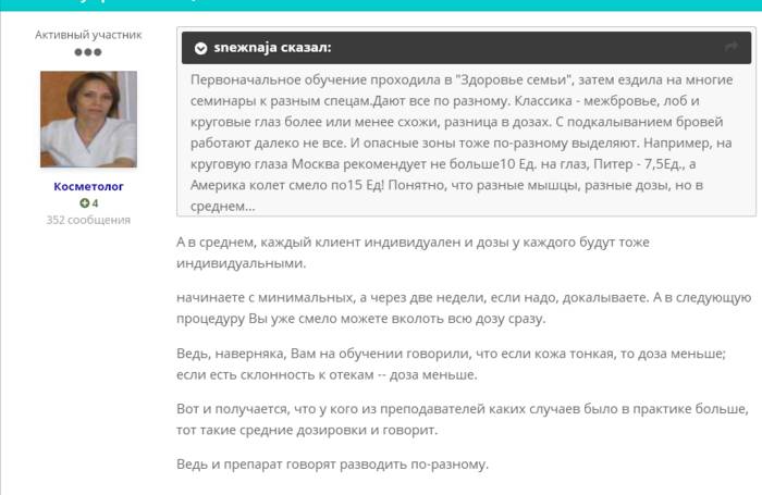 На форумах косметологи обсуждают вопросы работы с инъекциями ботокса, делятся опытом работы с различными препаратами.