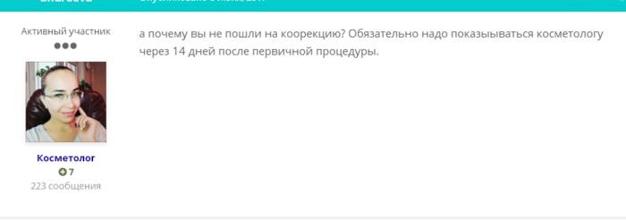 Участник пишет о необходимости коррекции через 14 дней после процедуры.