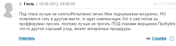 Пользователь указывает на появлении морщин в другом месте после инъекций.