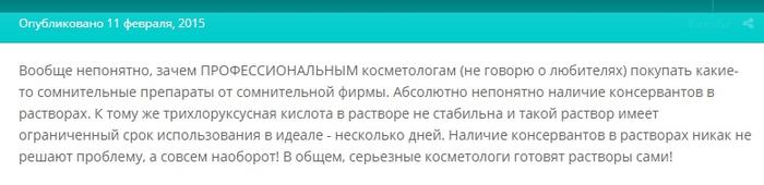 Пользователь пишет о недостатках готовых составов, профессиональные косметологи готовят растворы самостоятельно.