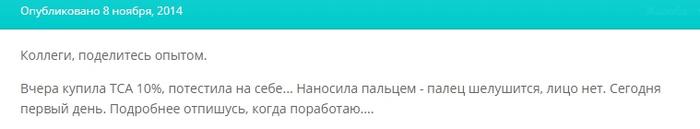 Участник пишет о хорошем результате применения ТСА пилинга, кожа стала ровной, удалось избавиться от постакне.