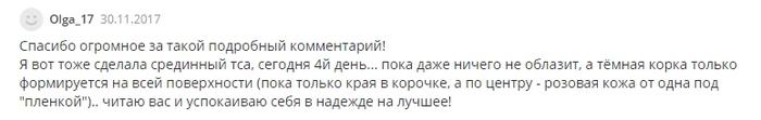 Участник описывает свой опыт проведения пилинга, период восстановления, ожидает завершения для оценки результатов.