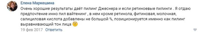 Многие девушки отмечают эффективность салонных процедур в борьбе с гиперпигментацией. Автор этого отзыва решилась по совету своего косметолога на срединный ретиноевый пилинг в сочетании с пилингом Джесснера. Из минусов девушка отмечает болезненный период реабилитации. Из плюсов — заметный результат: обновленная, мягкая и гладкая кожа.
