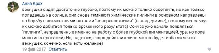 В некоторых случаях оказывается эффективным и применение косметических средств. Эта девушка хвалит Отбеливающий тоник-пилинг производства Белита Витекс, который справился не только с пигментацией на ее жирной коже.