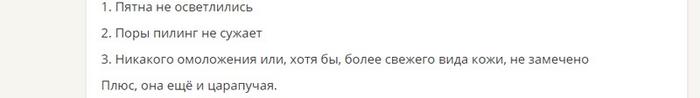 В то же время немало негативных мнений об этом продукте. Претензии есть и к составу, и к воздействию пилинга на кожу.