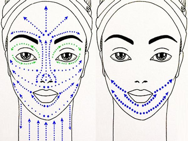Традиционная схема выполнения сеанса не вызывает затруднений при освоении методики. Движения производят строго по массажным линиям: